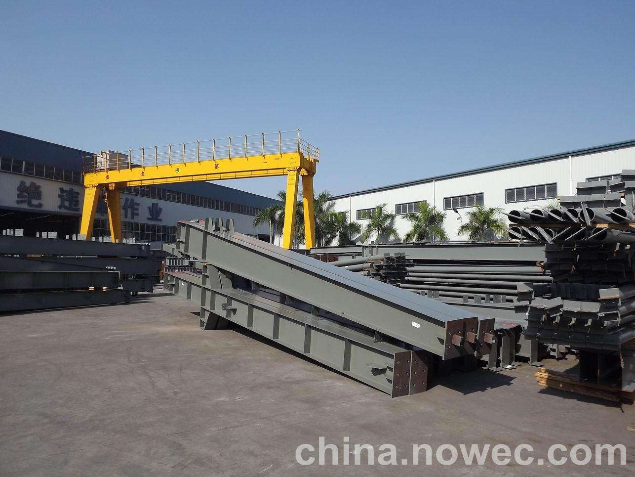 条状单元一般沿长跨方向分割,其宽度约为1~3个网格,其长度为l2或l2/2(l2为短跨跨距)。块状单元一般沿启东网架平面纵横向分割成矩形或正方形单元。每个单元的重量以现有起重机能胜任为准。条(块)与条(块)之间可以直接拼装,也可空一网格在高空拼装。由于条(块)状单元是在地面拼装,因而高空作业量较高空散装法大为减少,拼装支架也减少很多,又能充分利用现有起重设备,故较经济。这种安装方法适用于分割后网架的钢度和受力状况改变较小的各类中小型网架,如两向正交正放四角锥、正放抽空四角锥等网架。